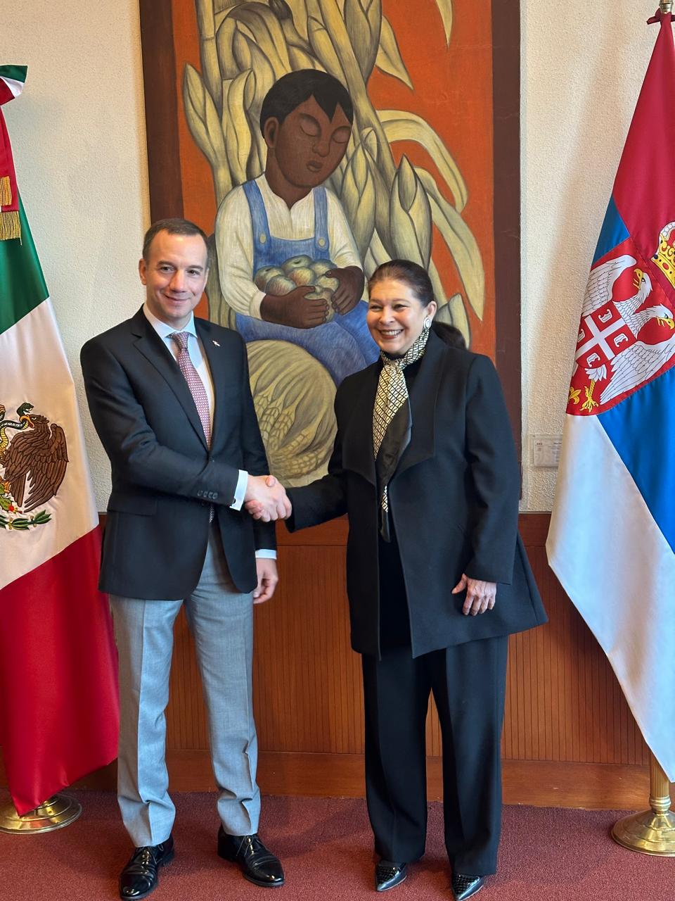 У сусрет обележавању осамдесете годишњице дипломатских односа између Србије и Мексика државни секретар Д. Јовић и подсекретарка за спољне послове у Министарству спољних послова Марија Тереса Меркадо Перес су потврдили посвећеност традиционалном пријатељству и договорили конкретне кораке за наставак јачања политичког дијалога и свеобухватне сарадње између две земље.